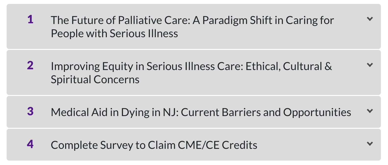 This program is designed to satisfy New Jersey’s two-hour end-of-life care requirement for medical license renewal.